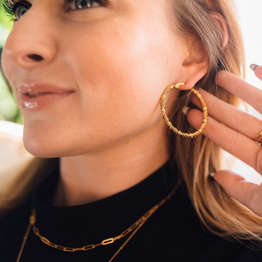 Perfect for anyone who loves a simple hoop for everyday wear. The Classic Nan Braided hoops are made from gold plated stainless steel. You have to add these hoops to your collection! A timeless homage to a cherished aunt and godmother who holds a special place in our hearts.