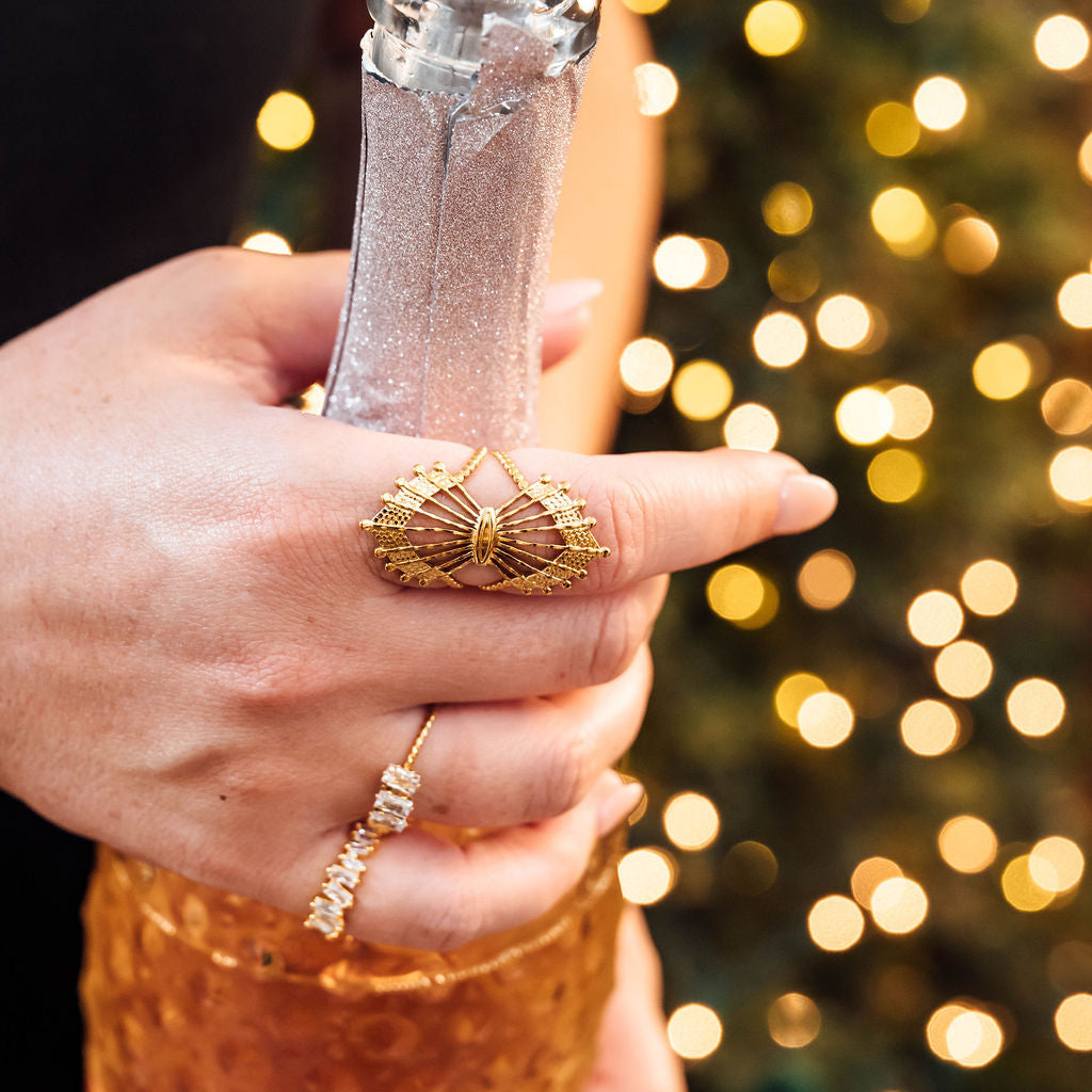 The Jessica Ring is named in memory of a devoted mother, sister, wife, and friend who left this world far too soon. Crafted in gold-plated stainless steel, the fan-like design radiates outward like light, symbolizing the way Jessica lived: vibrant, generous, and full of grace. Each line and curve represents the beauty she brought into the world and the legacy she leaves behind a loving family. This piece is a way to carry her story forward to honor her spirit and the love she poured into every moment.