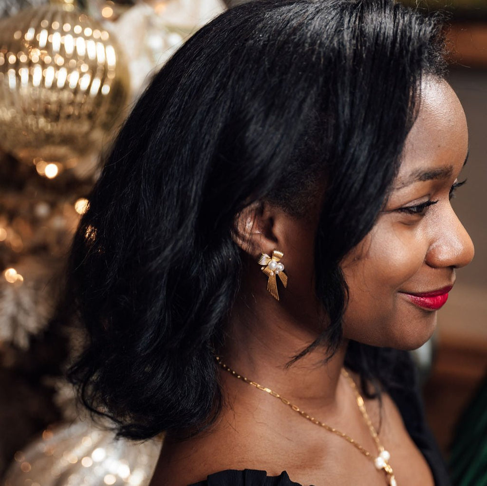 Introducing the Clara Earrings, the perfect festive accessory to elevate your holiday season! These exquisite oversized studs are crafted from gold-plated stainless steel and feature a charming bow design adorned with beautiful pearl details. With their elegant yet playful look, the Clara Earrings are ideal for adding a touch of sparkle to your holiday gatherings, from festive parties to family celebrations. Whether you’re dressing up for a special occasion or looking to brighten your everyday outfits, these earrings will bring joy and sophistication to your holiday wardrobe.