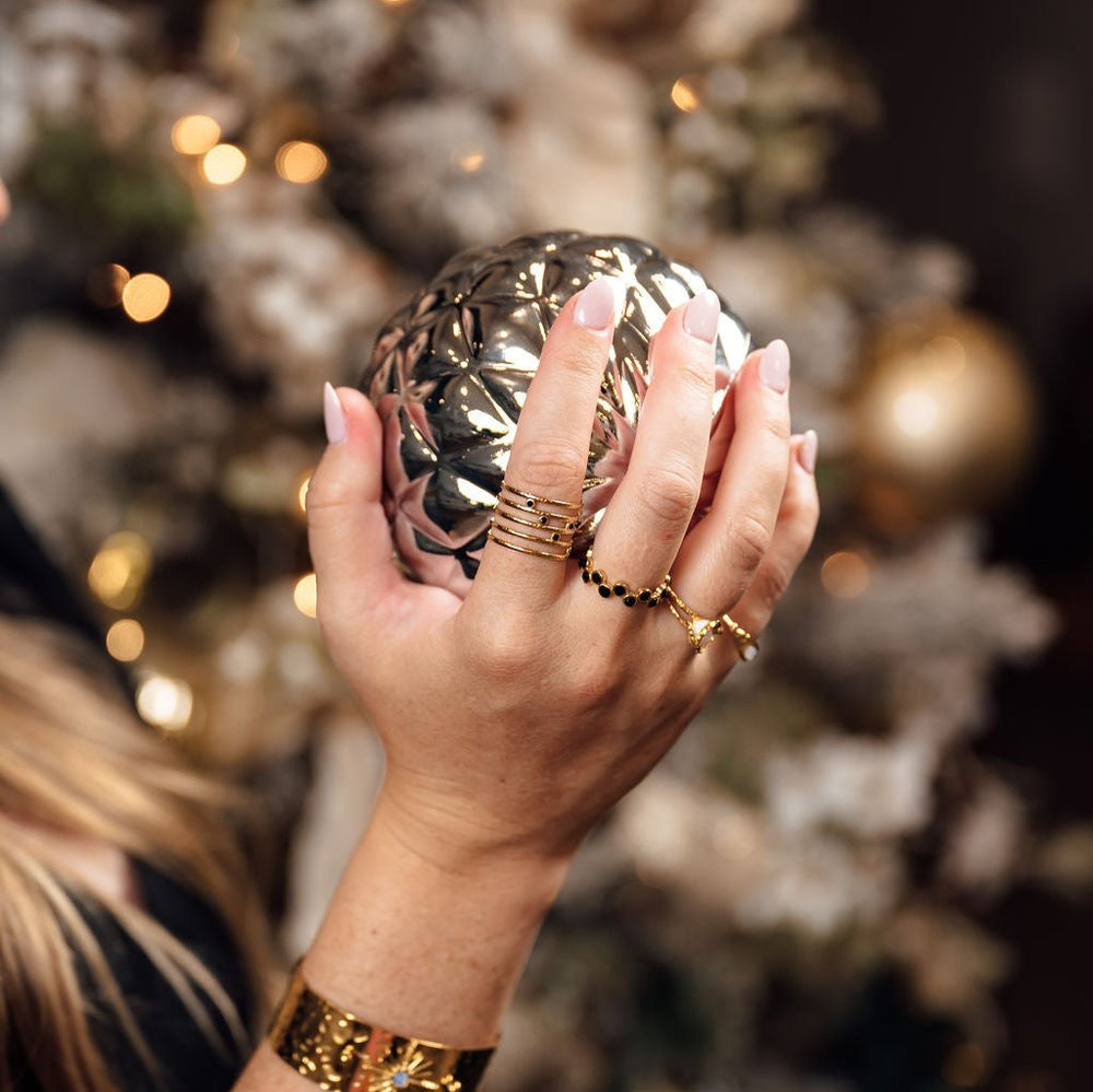 Introducing the Pamala Ring, a chic and versatile piece designed for those who appreciate minimalistic elegance. This adjustable "stacked ring" features a sleek offset black enamel pattern that offers a touch of modern sophistication. Perfect for layering or wearing on its own, the Pamala Ring combines style with comfort, reflecting the dynamic lifestyle of its namesake—a beloved "Beach Babe" who is always on the go.